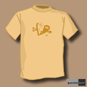 T-Shirt from the PROMODORO factory, Size XL, sand colour combined with light-brown print, Motive: "the smiling heart", an very old motiv. Back to the 80ties!