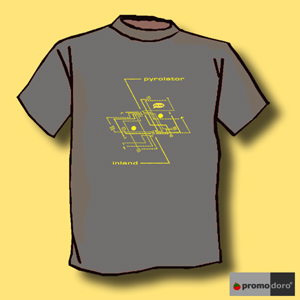 T-Shirt von PROMODORO, Grösse S, M, L, aschgrau mit gelbem Druck.Motiv: Schaltungsschema vom originalen 79er INLAND Artwork. Understatement auf T-Shirt.